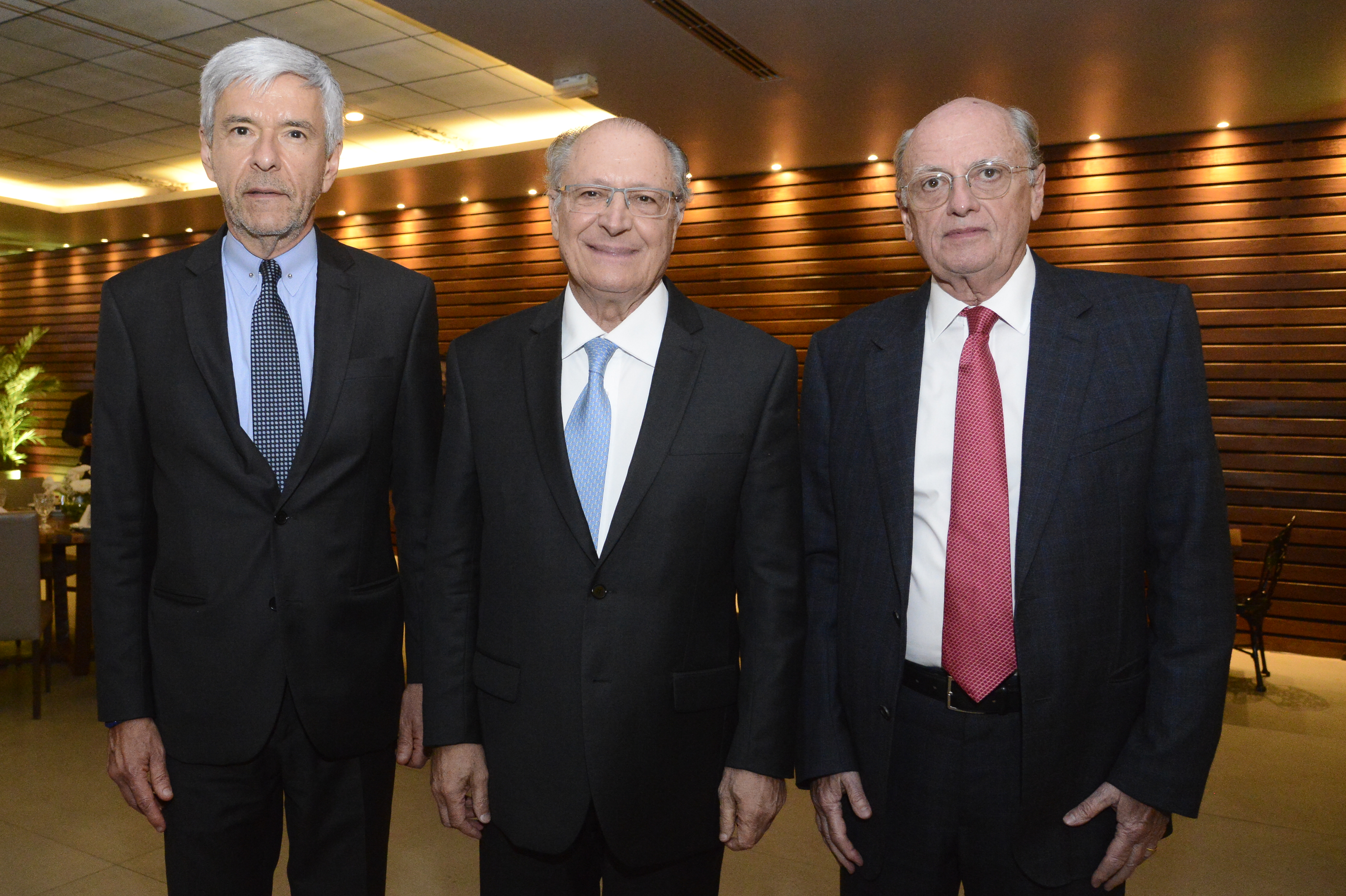 Da esquerda para a direita: Dr. Arnaldo Hossepian Junior; Dr. Geraldo Alckmin e Prof. Dr. Giovanni Cerri