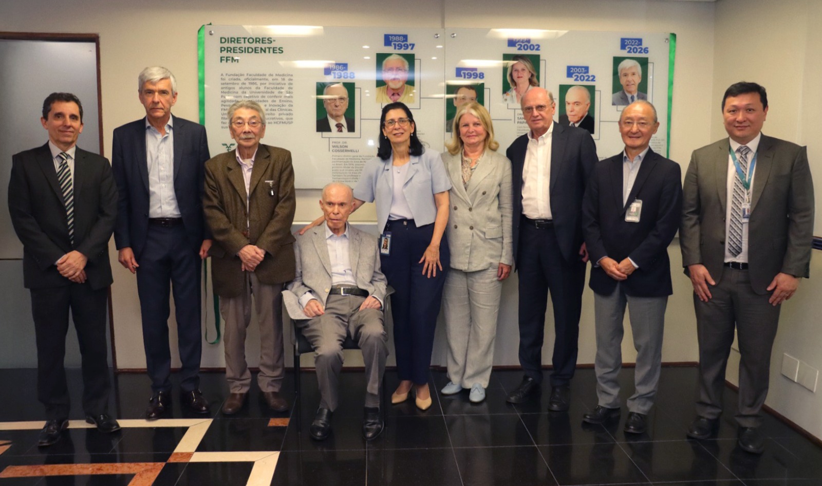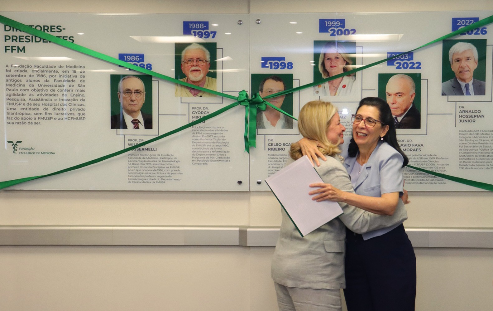 "Este ato é mais do que uma celebração histórica, é um reconhecimento do legado de cada dirigente que contribuiu para consolidar a Fundação Faculdade de Medicina como um dos grandes pilares do complexo HCFMUSP, garantindo agilidade necessária para enfrentar os desafios da saúde”. Assim declarou a Profa. Dra. Eloisa Bonfá, Presidente do Conselho Curador da FFM, na abertura da inauguração do Painel de Dirigentes da Instituição, que contou com a presença do Prof. Flavio Fava de Moraes e da Dra. Sandra Papaiz.