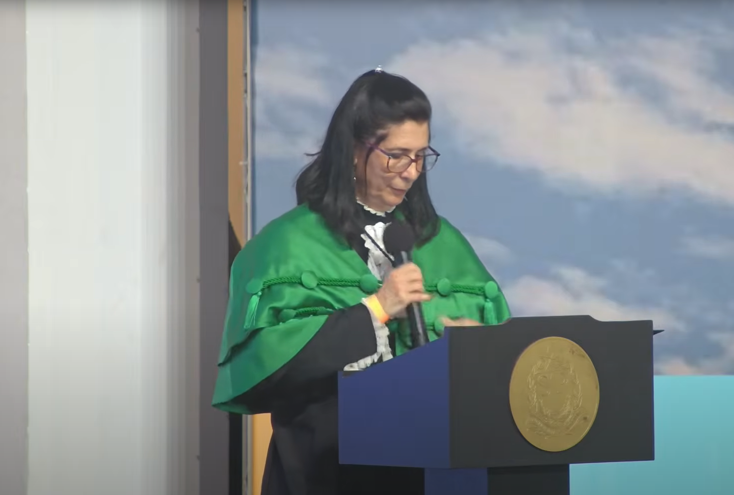 Profa. Eloisa Bonfá em seu discurso representando o Conselho Universitário da USP.