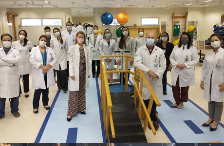 Grupo foi recepcionado pelo Professor Titular da Disciplina de Oncologia Clínica do Departamento de Radiologia e Oncologia da FMUSP, Prof. Dr. Paulo Hoff; pela Coordenadora do Programa de Residência Médica em Oncologia Clínica da FMUSP, Drª. Milena Mak e pela Coordenadora do Programa de Residência Médica em Radioterapia, Profª. Drª. Rosangela Villar